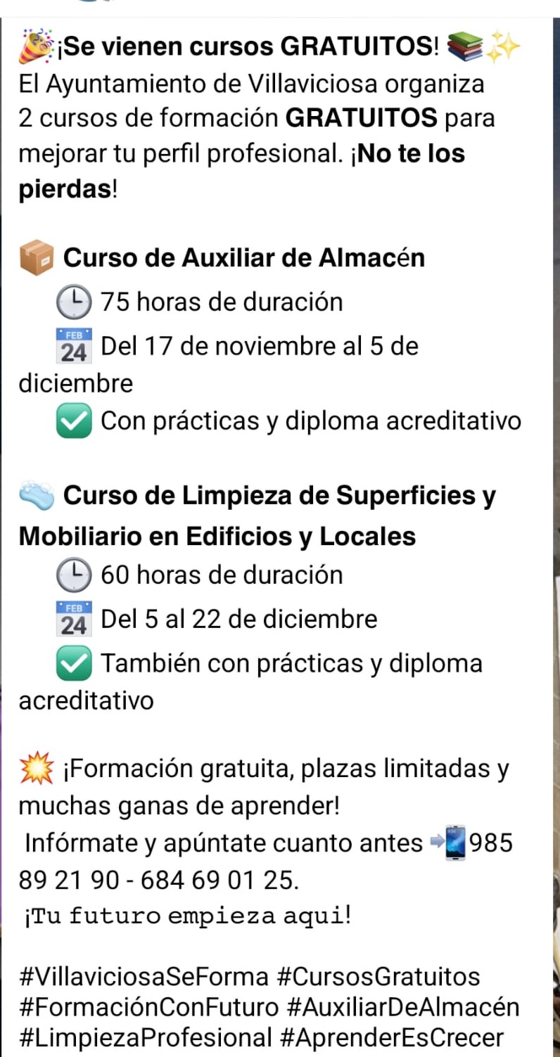 Ayto. Villaviciosa organiza 2 cursos formaci...