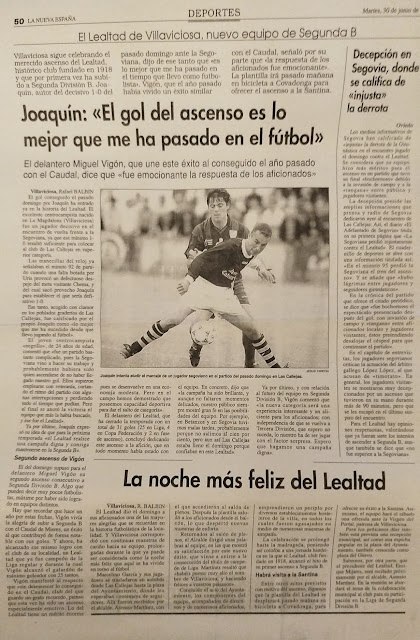 BALBÍN, Rafael, «El Lealtad de Villaviciosa, nuevo equipo de Segunda B», La Nueva España, 30-VI-1998.