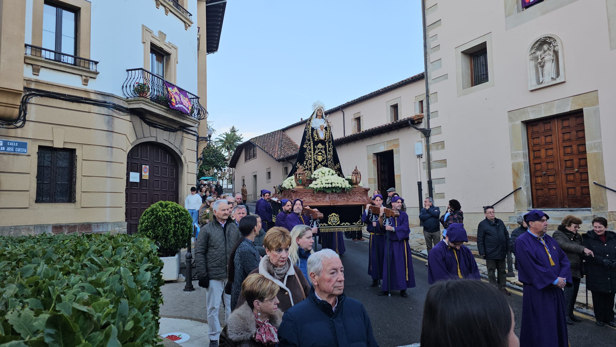 Villaviciosa volvió a vivir al amanecer de este Sábado Santo uno de los momentos más singulares de su Semana Santa: la Procesión de la Soledad, una cita marcada por la sobriedad, la belleza y un profundo ambiente de recogimiento.