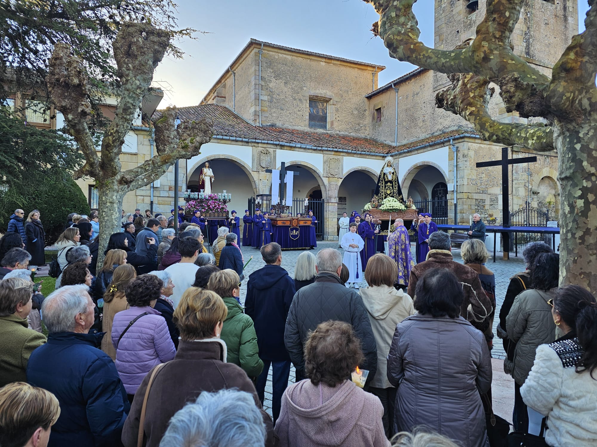El acto, uno de los más tempranos del calendario litúrgico local, arrancó a las 8.30 horas desde la iglesia parroquial, con la salida de las imágenes de la Santa Vera Cruz, San Juan y la Virgen Dolorosa. Antes, a las 8.00 horas, el templo acogió el rezo del tradicional Rosario de la Soledad.