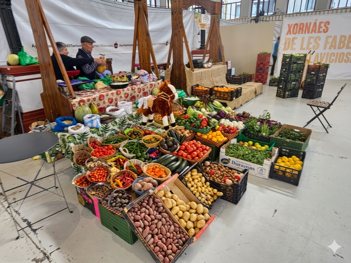 En la Plaza de Abastos, las asociaciones del concejo participan en el Concurso Exposición de Fabes y Mundo Rural “Simientes – Postales de la Huerta”, que pone en valor el trabajo agrícola y el patrimonio rural.