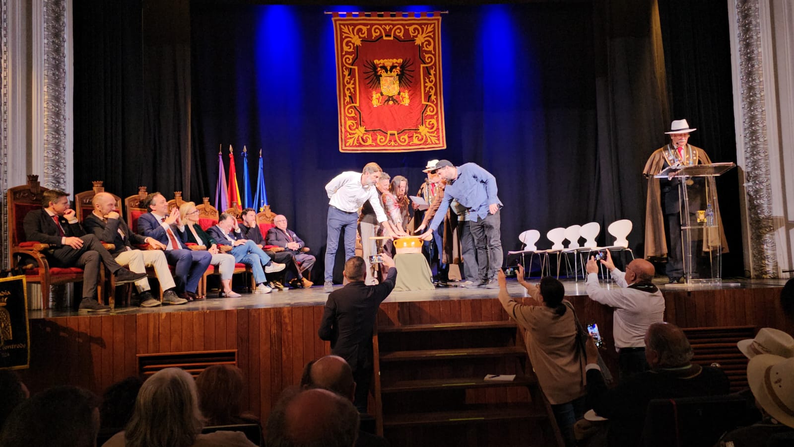 El acto en el teatro Riera estuvo presidido por Juan Cofiño, Presidente de la JGPA, Laura Martínez, Viceconsejera de Turismo y Begoña López, Directora General de Agricultura, Agroindustria y Desarrollo Rural del Gobierno del Principado de Asturias, José Almeida, Presidente de Hostelería de España además del alcalde Alejandro Vega