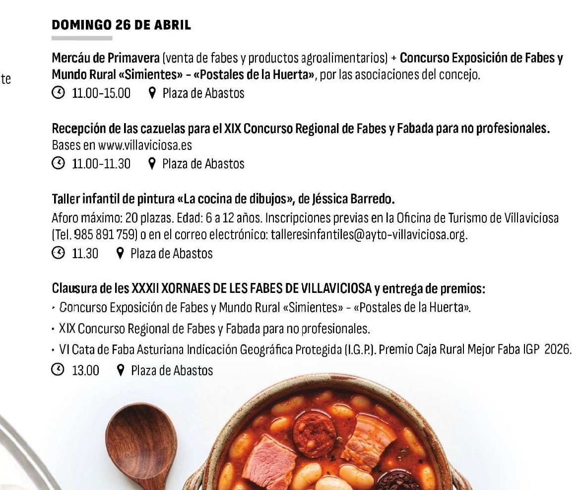 Villaviciosa ha celebrado este fin de semana uno de los momentos centrales de las XXXII Jornadas de les Fabes 2026, una cita ya consolidada en el calendario gastronómico y cultural del concejo. Desde el pasado martes, con el concurso La Mejor Fabada del Mundo, la programación ha ido desplegando actividades que han contribuido a ambientar la villa en torno a la cocina tradicional asturiana y, especialmente, a la faba.