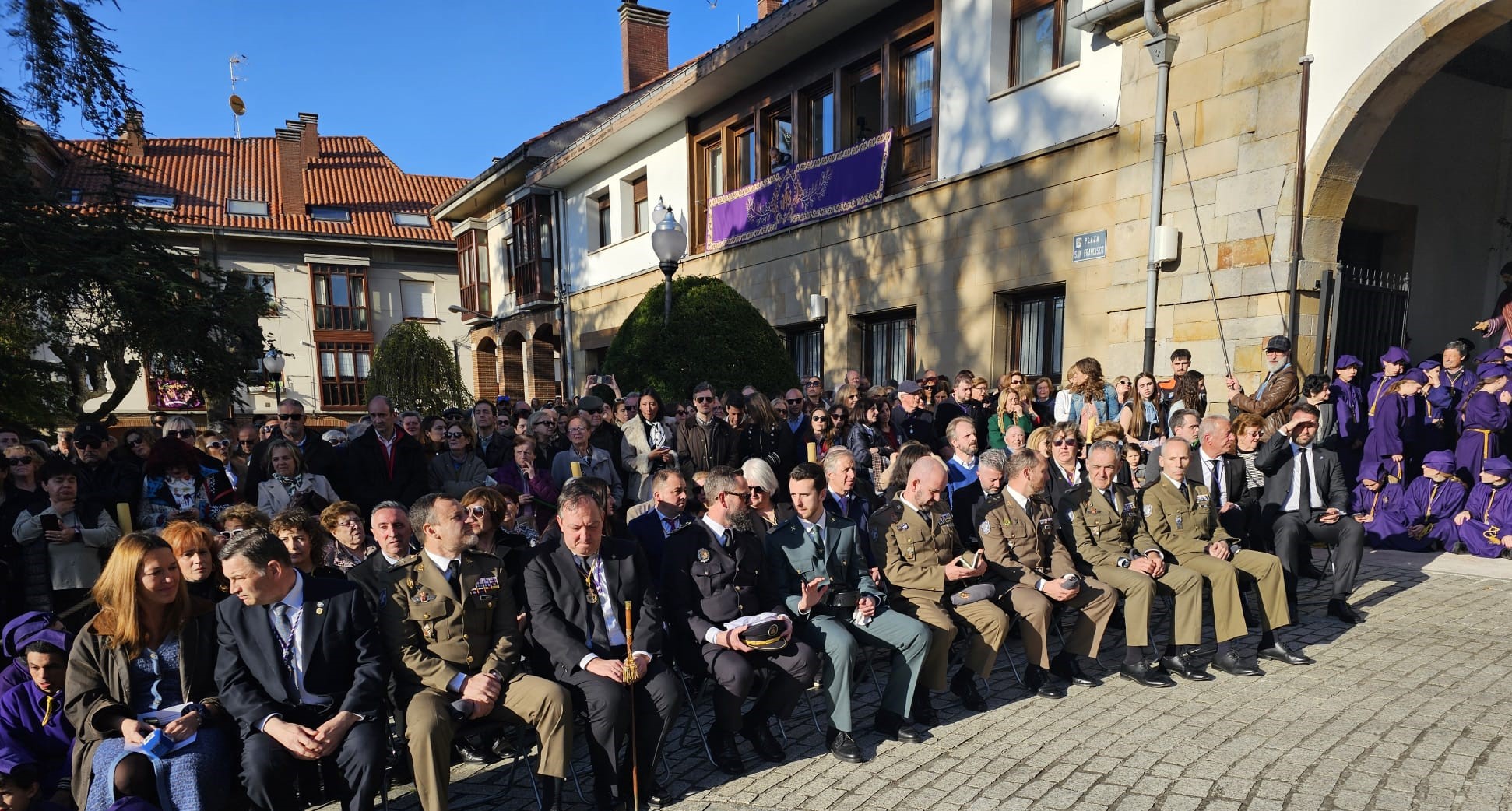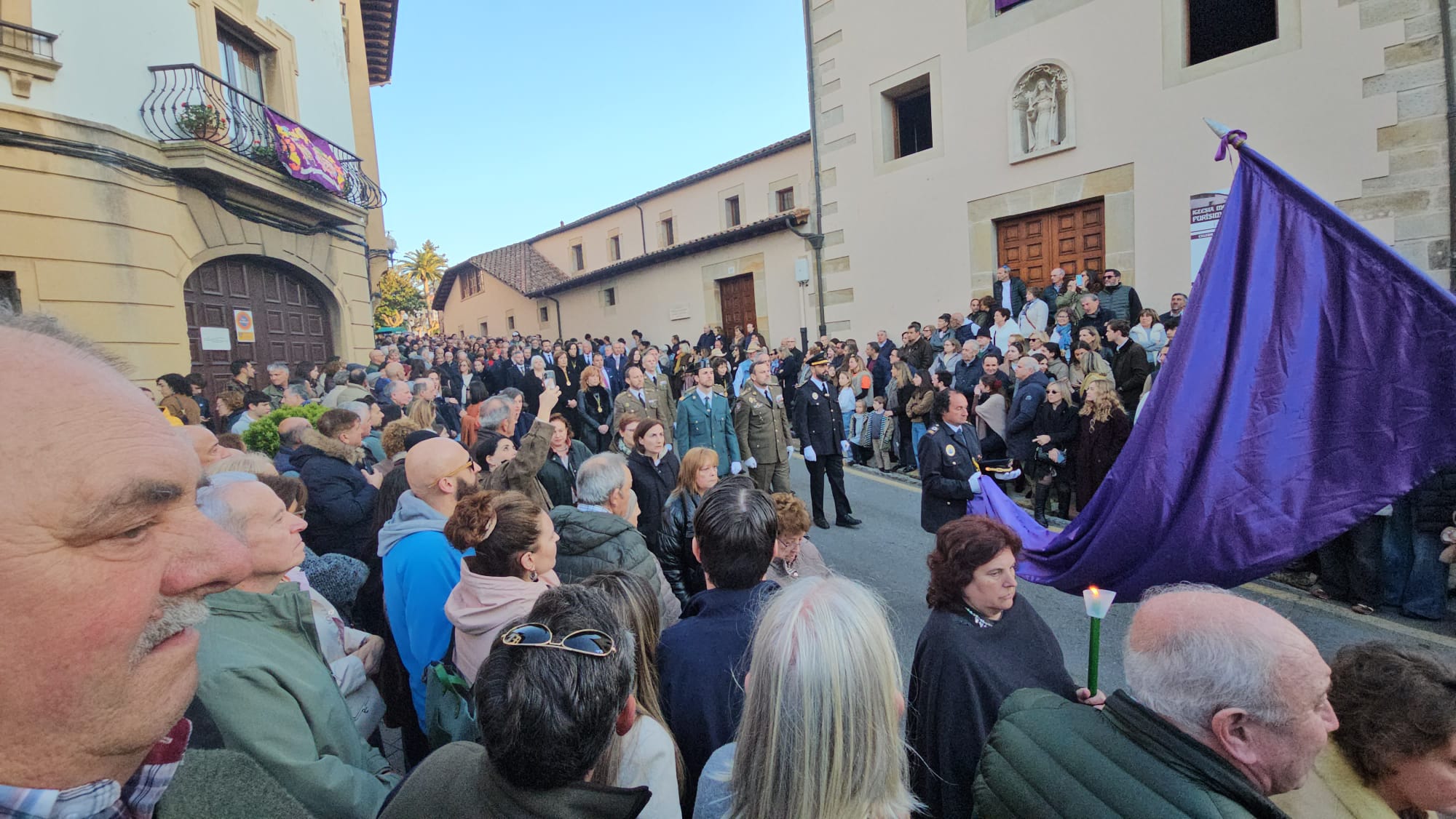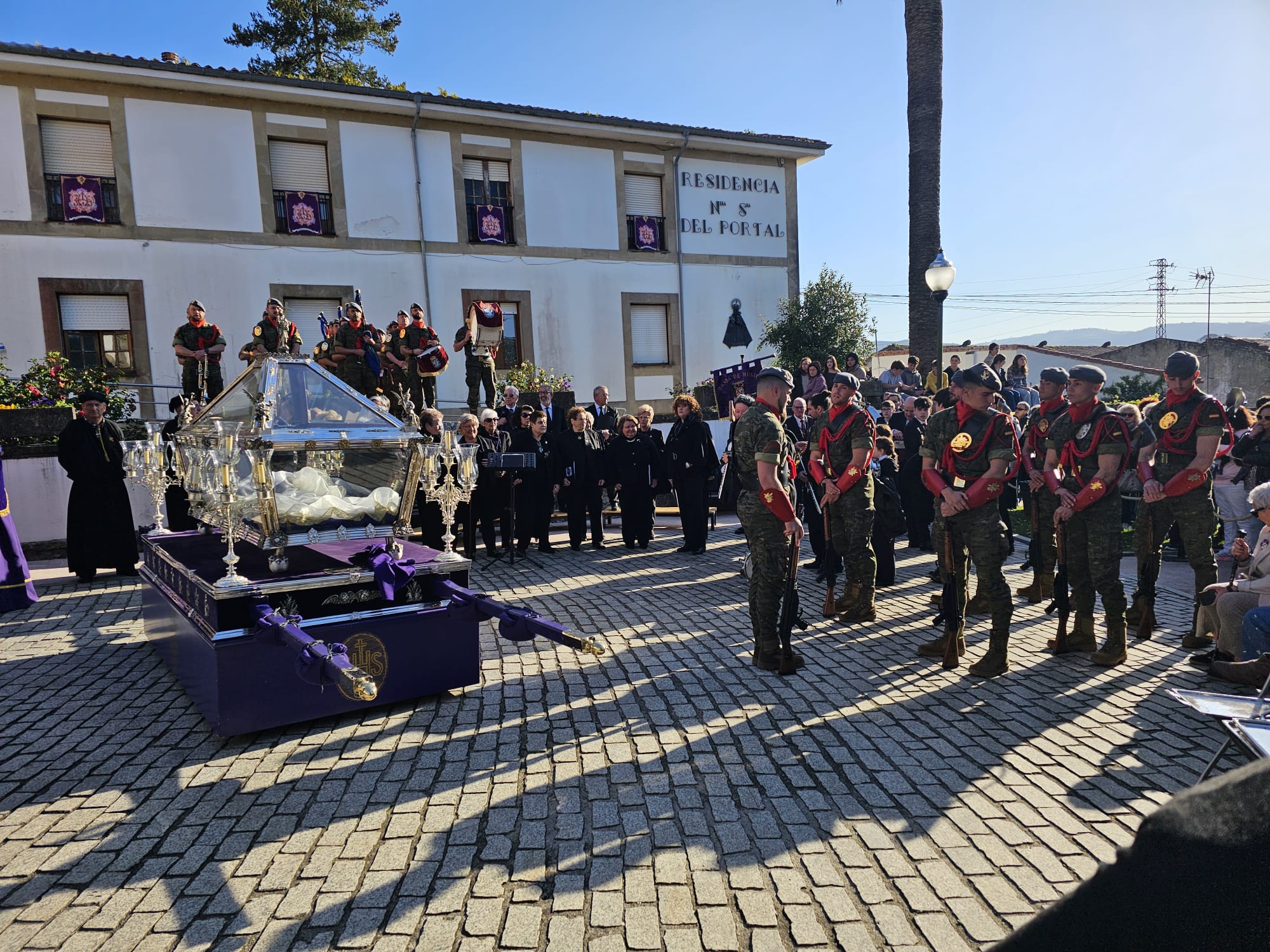 Tras el sermón, las calles de Villaviciosa acogieron la Procesión del Santo Entierro, uno de los actos más solemnes de la Semana Santa maliaya. La música de la Coral Capilla de la Torre, la Banda de Música de Villaviciosa y la Banda de cornetas del Regimiento Príncipe Nº III acompañó el recorrido, aportando un marco sonoro que elevó aún más la emoción del momento