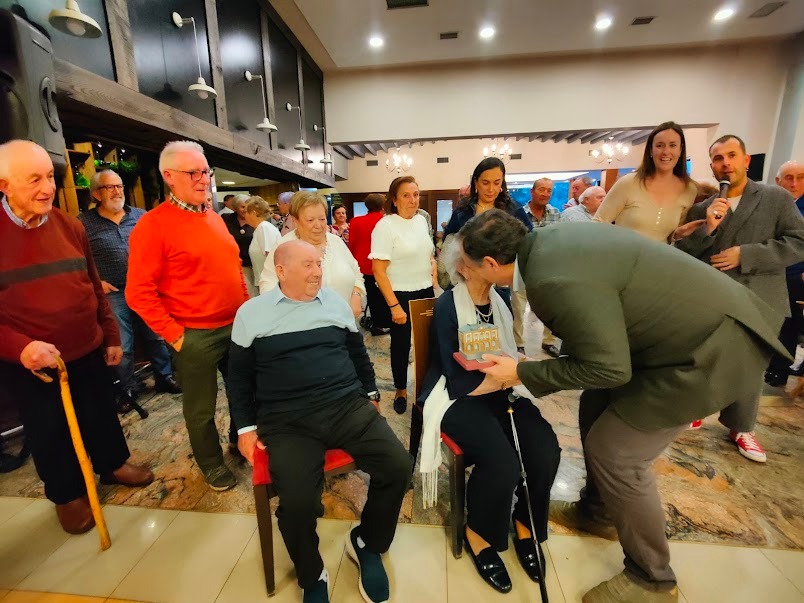 Y como abuelo del año 2025, fue reconocido nacido el 30/06/1929 en El Riañu (Villaviciosa), que a sus 97 años, reside ahora desde hace un año en la Residencia Miyar Somonte de Amandi. Allí no ha dejado, una de sus aficiones favoritas, la canción asturiana, como dejó patente en el acto, interpretando dos canciones de tonada, una de ellas, una de las más difíciles, "Carretera del Pedrosu".
