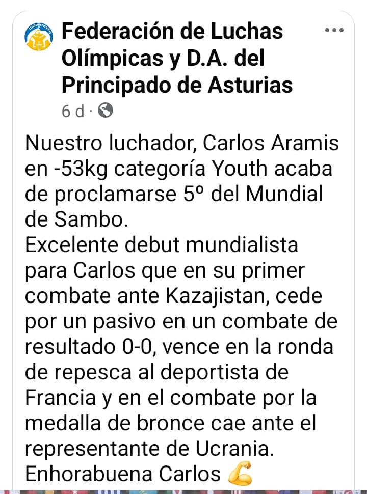 El luchador maliayés Carlos Aramís en -53kg en categoría Youth se proclama 5º del Mundial de Sambo
