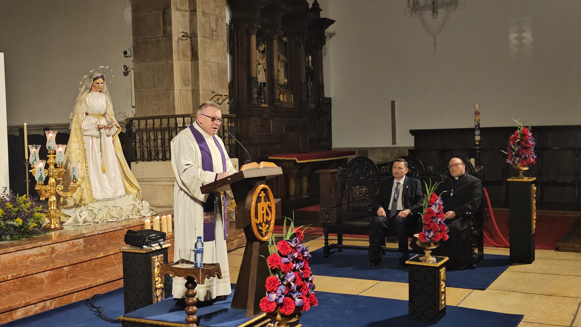 Además del mayordomo de la Cofradía Jesús Nazareno Nicolás Rodríguez Martín, el acto contó con la presencia del alcalde Alejandro Vega Riego, el párroco Celestino Riesgo Iglesias; además de otras autoridades, cofrades y numerosos feligreses que llenaron el templo parroquial