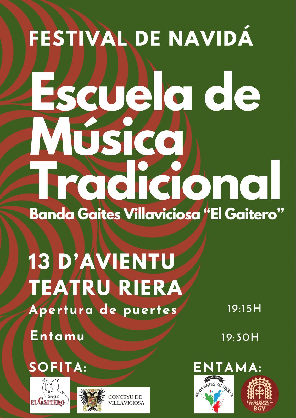 La Banda Gaites Villaviciosa “El Gaitero” celebra este sábado, 13 de diciembre, su tradicional Festival de Navidad en el Teatro Riera de Villaviciosa. Más de medio centenar de alumnos de la escuela de música tradicional mostrarán el trabajo realizado durante el último año en las distintas especialidades impartidas: gaita asturiana, tambor tradicional, acordeón diatónico, pandereta y baile.