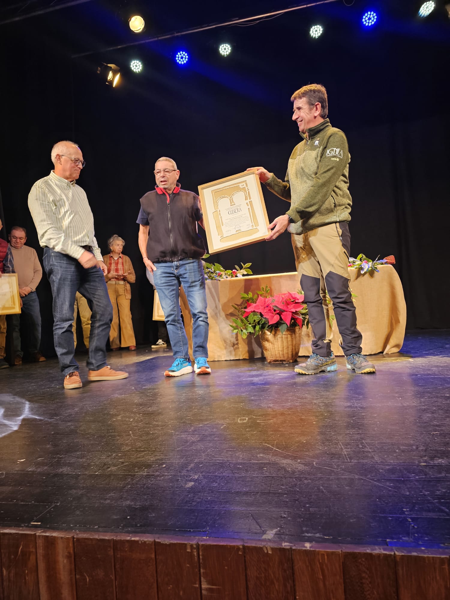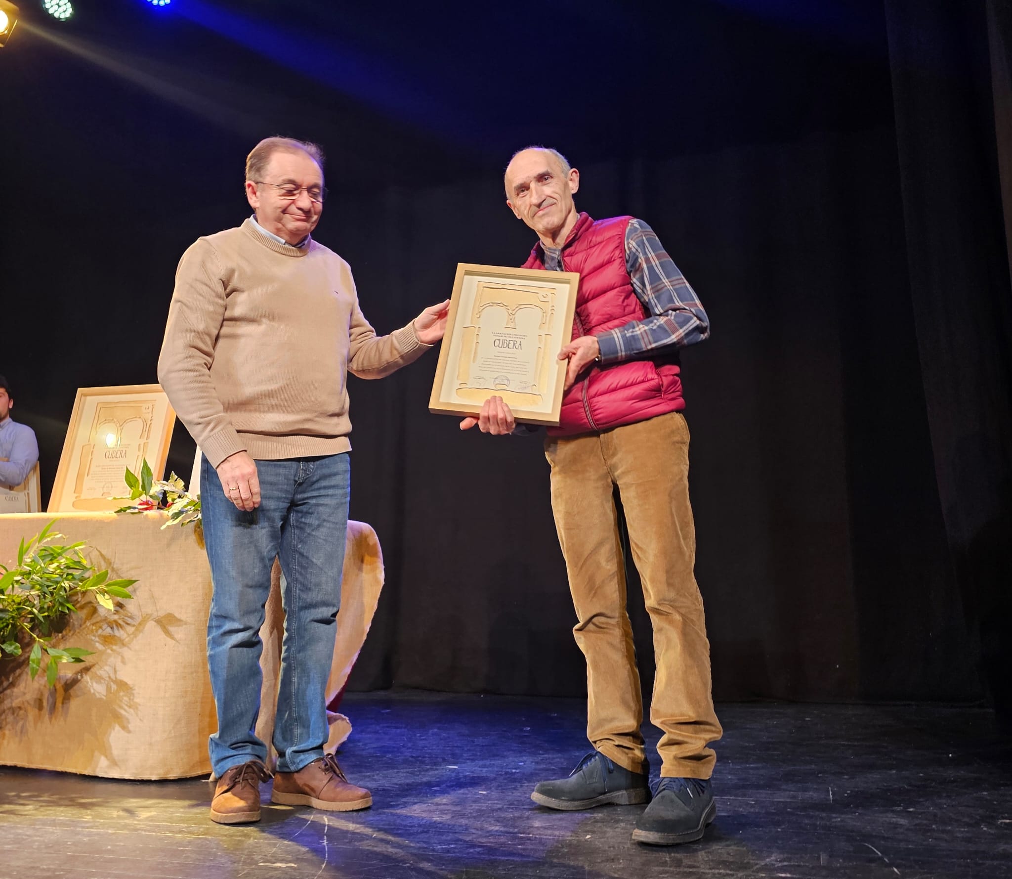Los mil euros de Premio Aldea Mas guapa" para Llama Ello que acompañan al diploma y título, encontrarán enseguida destino en la nutrida agenda de actividades que promueve a lo largo del año la asociación montañera, es estuvo representada en el escenario por su actual presidente, César Pina, y por su predecesor en el cargo, Juan Parrondo, para quien tenía unas palabras específicas de reconocimiento el presidente de Cubera, Ángel Valle, en su intervención previa a la entrega de galardones.