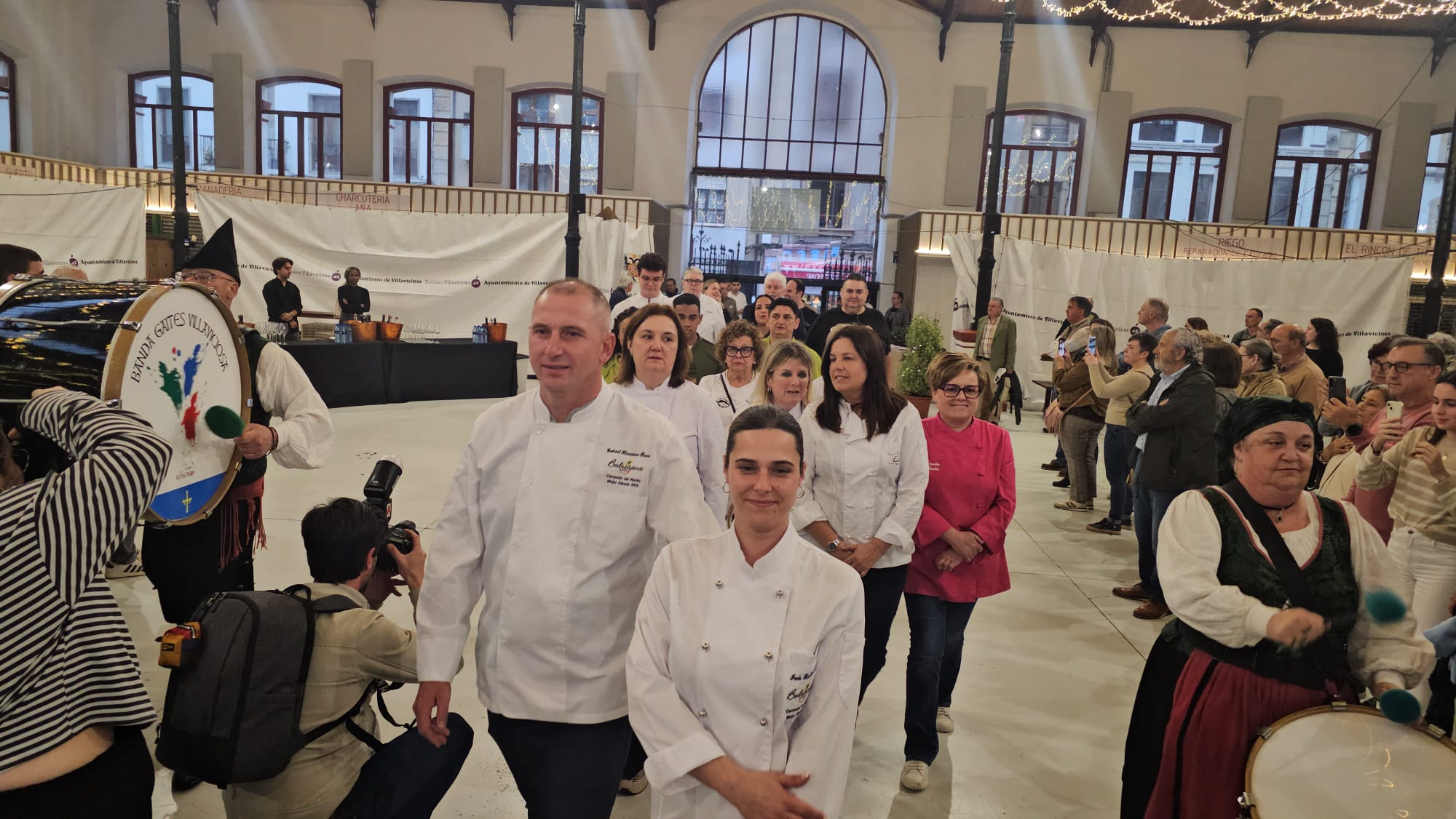 Tras la entrega de premios que contó con la Banda de Gaites Villaviciosa El Gaitero, los asistentes degustaron en la Plaza de Abastos de una degustación de fabada y fabes con diferentes condimentos