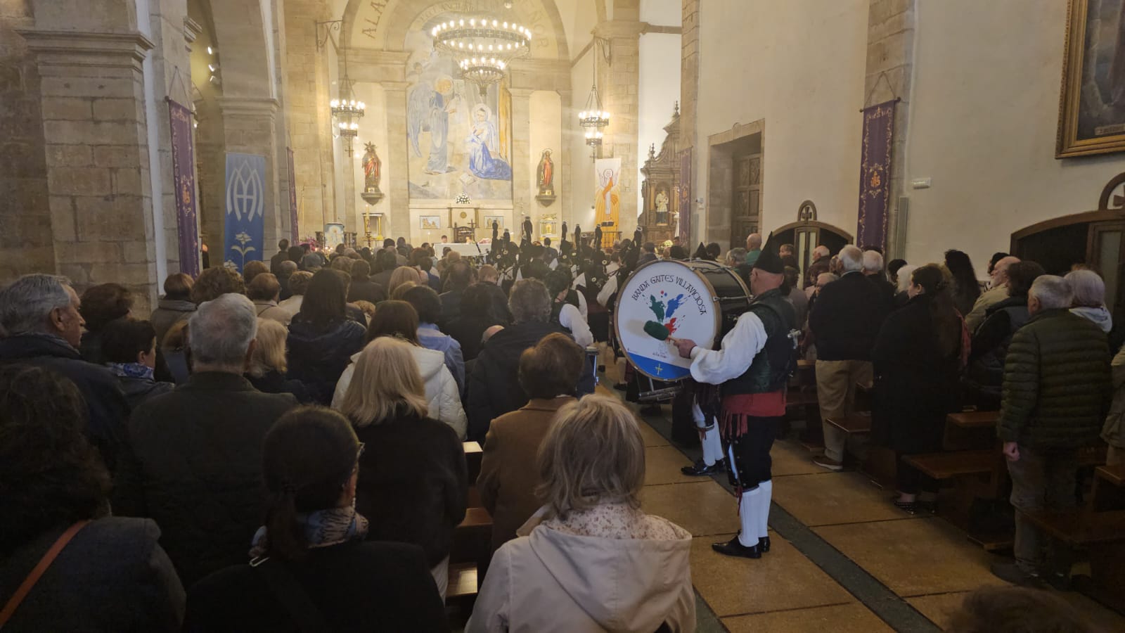 Banda Gaitas Villaviciosa el Gaitero en la misa del Domingo de Pascu 2026 de Villaviciosa Asturias