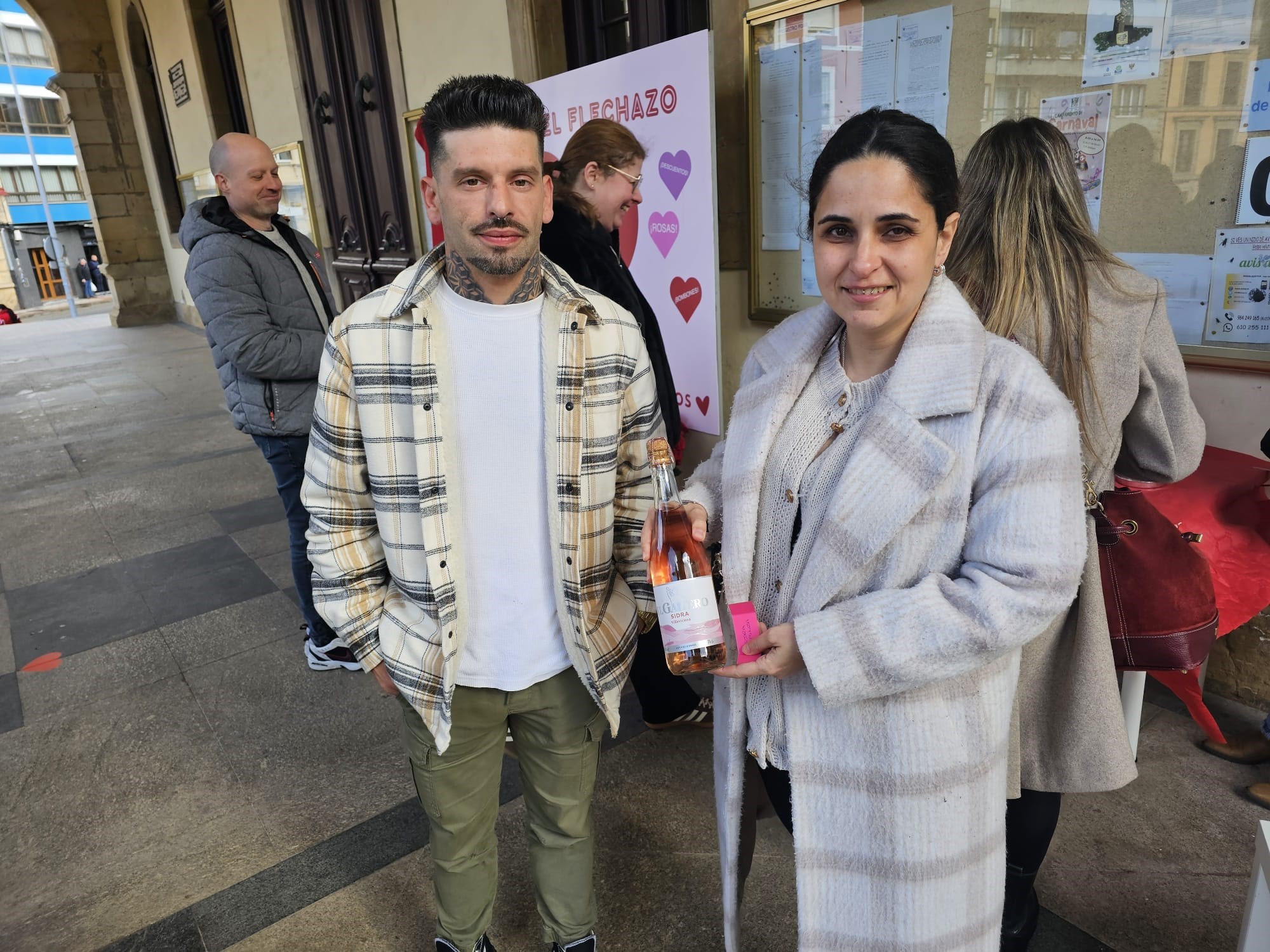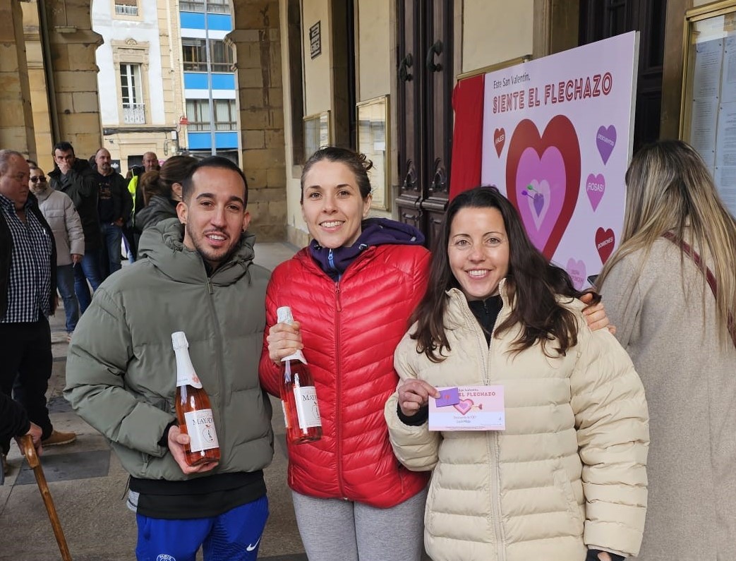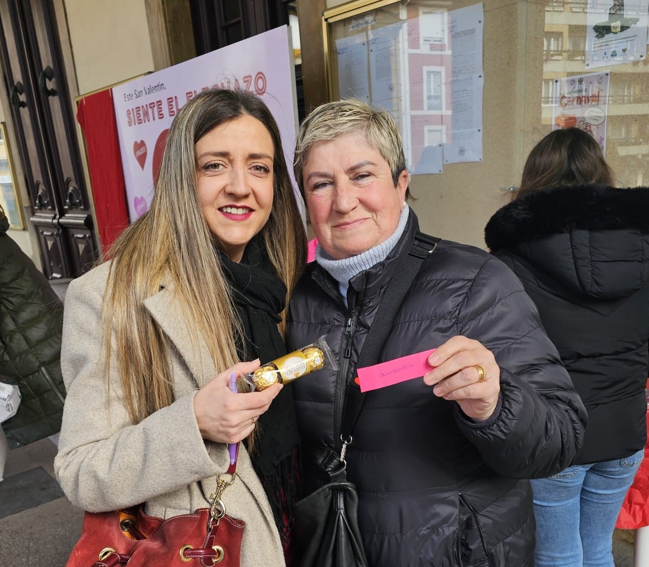 La satisfacción fue generalizada. Ani y Teresa Rosa, junto a Maite Palacio, celebraban sus lotes de sidra espumosa y bombones. “Es una iniciativa muy guapa”, señalaron. Marta Faya, Micaela y Ramón Lastra, (foto superior) por su parte, anunciaban que brindarían esa misma noche: “La tomaremos en la cena para seguir celebrando San Valentín”.