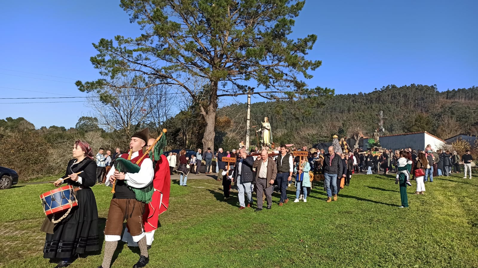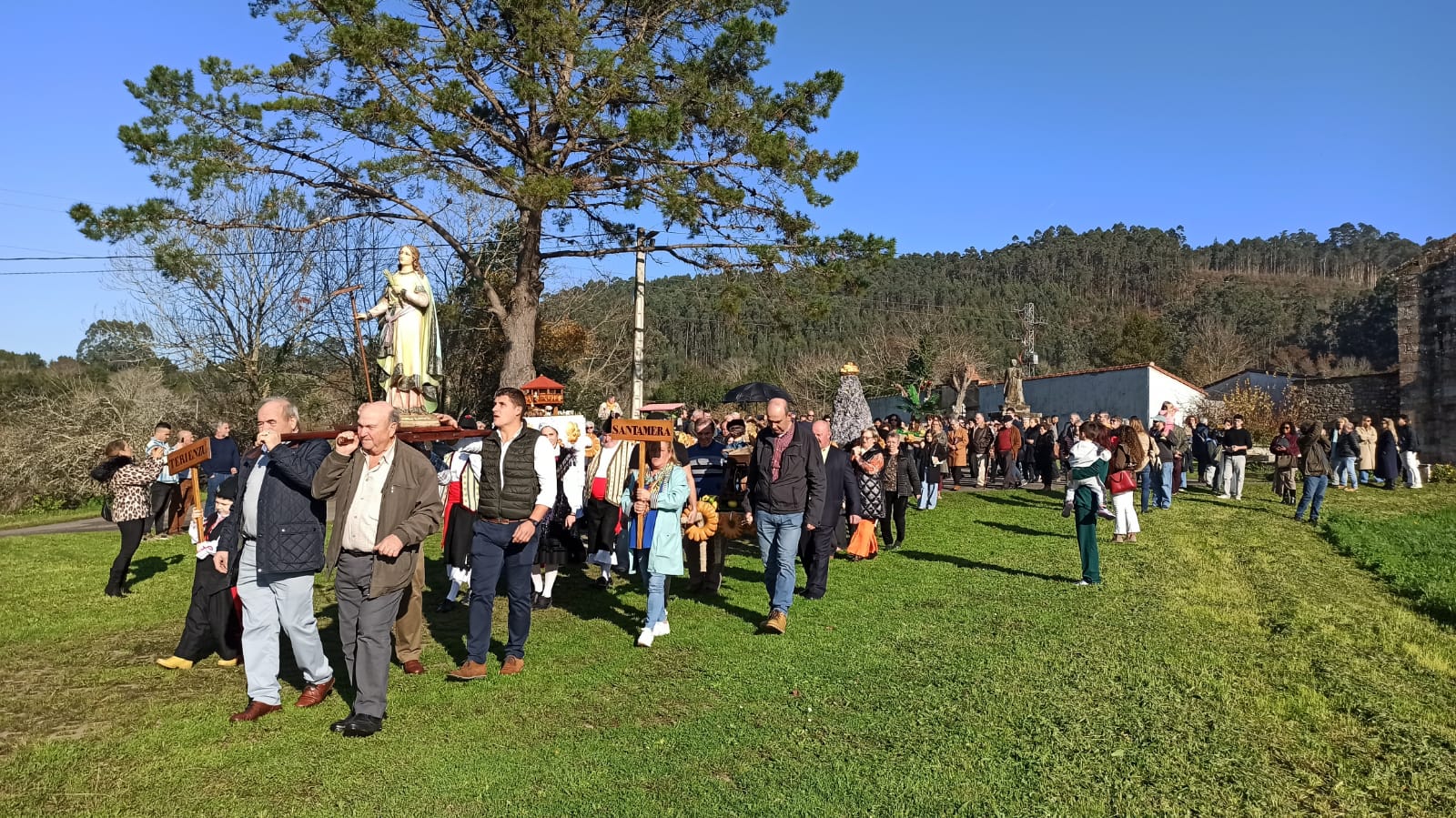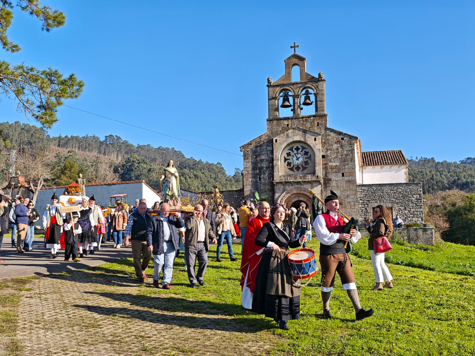 Finalizada la eucaristía, tuvo lugar la procesión, acompañada de gaita y tambor, en la que los ramos fueron portados por vecinos de todas las edades, arropados por el respeto y el entusiasmo de quienes se acercaron a compartir y mantener viva esta fiesta popular.