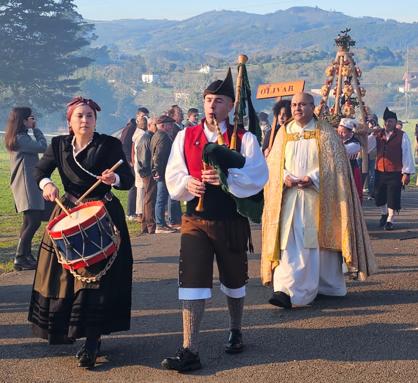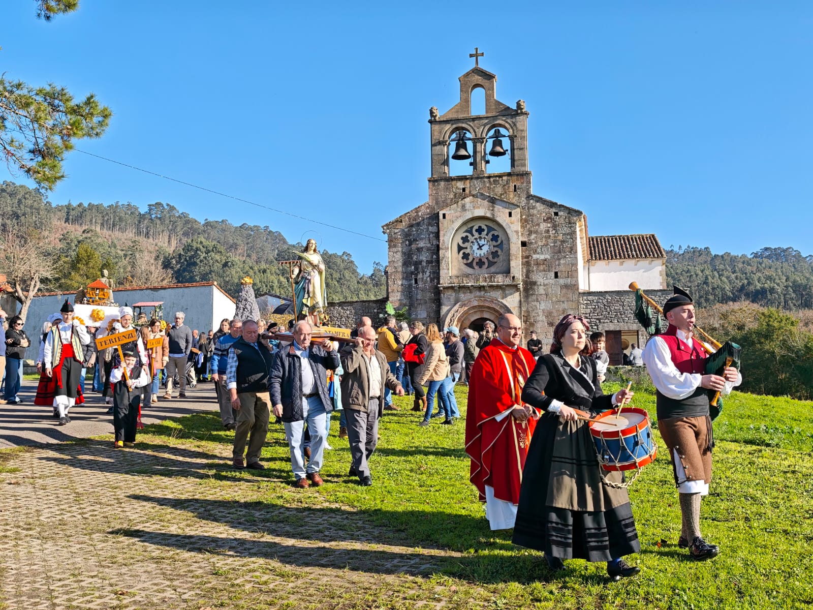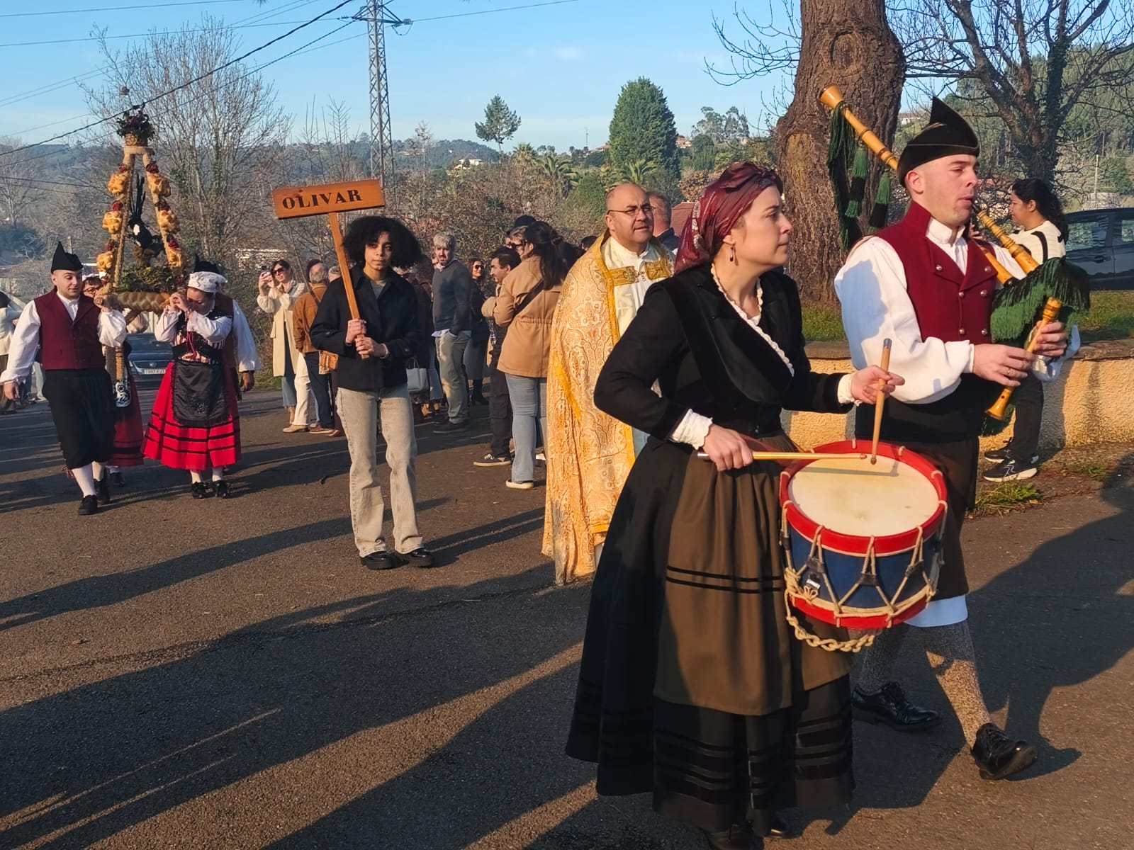 Finalizada la eucaristía, tuvo lugar la procesión, acompañada de gaita y tambor, en la que los ramos fueron portados por vecinos de todas las edades, arropados por el respeto y el entusiasmo de quienes se acercaron a compartir y mantener viva esta fiesta popular.