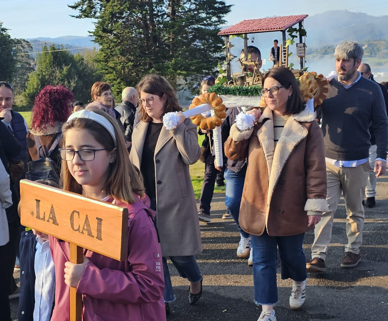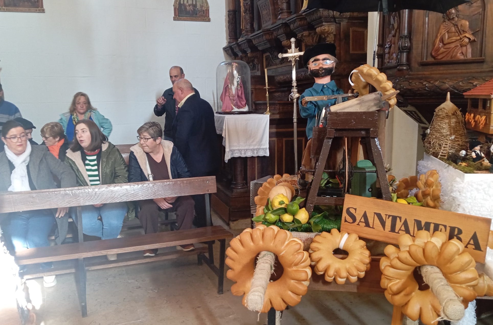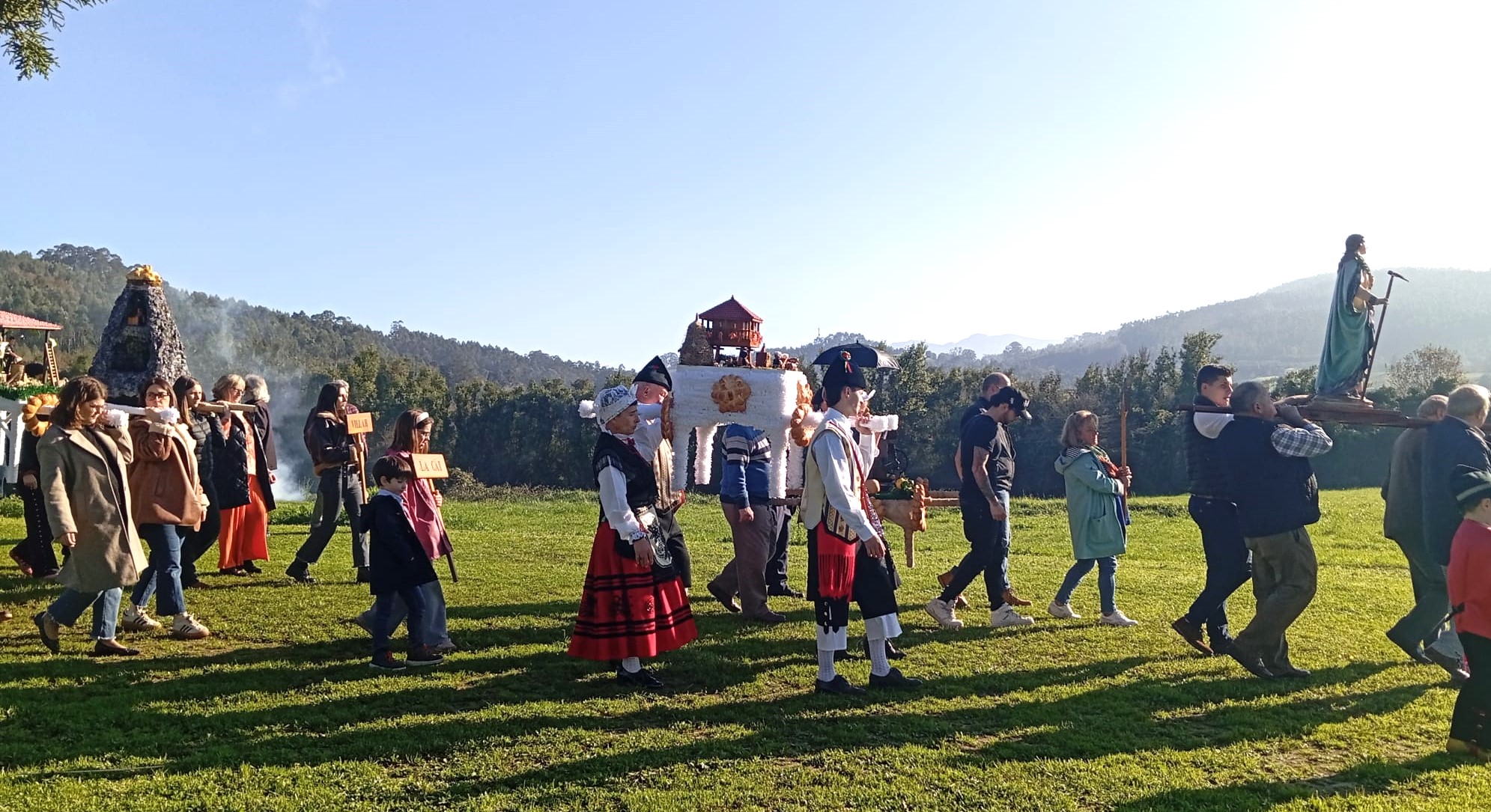 La celebración comenzó a las 12:00 horas con el desfile de siete ramos, elaborados por los distintos barrios y familias de la parroquia. Este año participaron los ramos de La Busta, Santamera, Villar, Olivar, El Terienzu y La Caí, además del de la Asociación de Vecinos. Como marca la tradición, cada ramo recorrió el camino desde su barrio en compañía de mayores y niños, en procesión hasta la Iglesia Parroquial de Santa Eulalia.