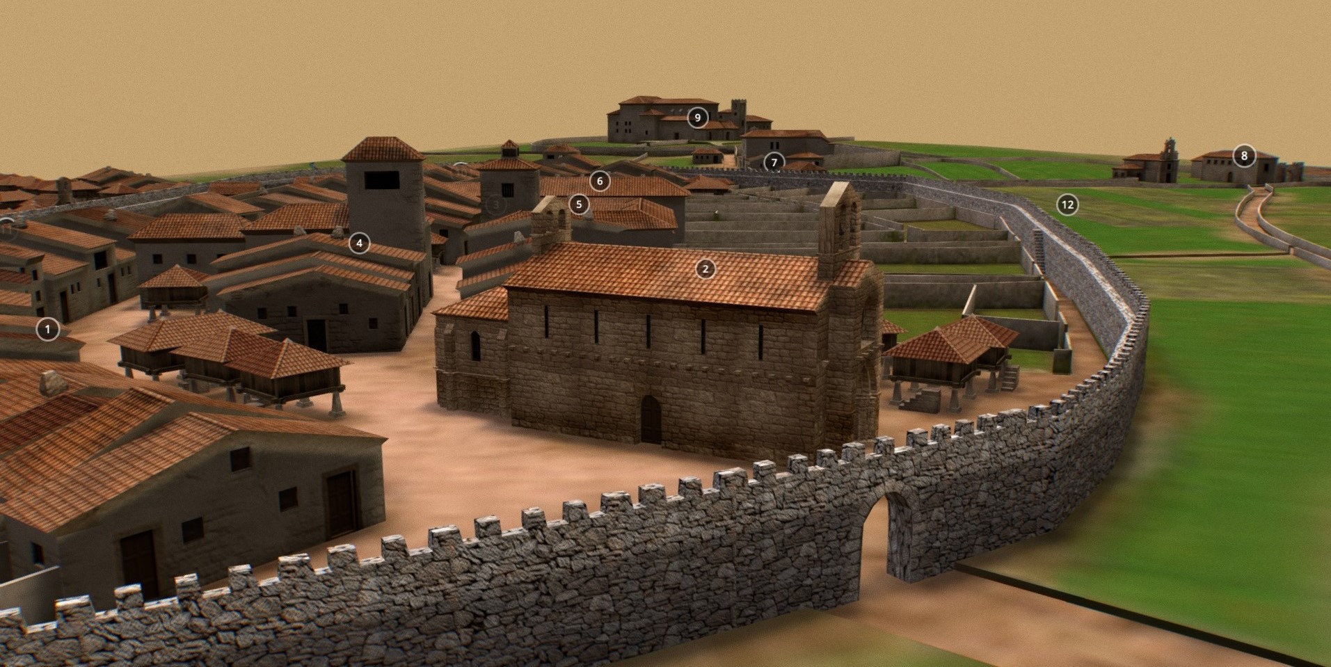 Además de la reproducción tridimensional de la maqueta, la plataforma incorpora vídeos explicativos sobre una docena de espacios de interés histórico, con contenidos narrados mediante animaciones y textos adaptados al español, inglés, francés y asturiano. La experiencia se enriquece también con la aparición de personajes históricos reales, como Diego Valdés, Pedro Peón – Duque de Estrada, o sor María Josefa del Santísimo Sacramento, que contextualizan la historia local y ayudan a comprender el desarrollo de la villa desde su origen medieval hasta los albores de la Edad Contemporánea.