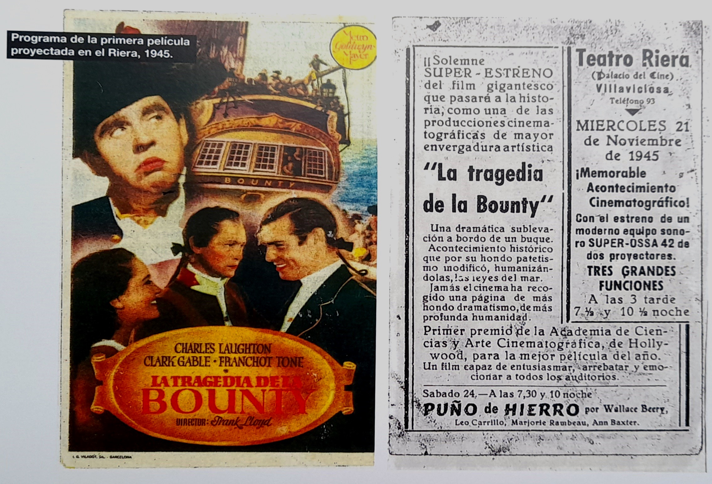 En noviembre de 1945, un recién inaugurado Teatro Riera convocaba al público de Villaviciosa a disfrutar de La Tragedia de la Bounty, de Frank Lloyd. Este clásico de aventuras estrenó la pantalla del teatro hace 80 años con tres sesiones vespertinas. La publicidad de la época lo presentaba como "solemne súper-estreno del film gigantesco que pasará a la historia como una de las producciones cinematográficas de mayor envergadura artística".